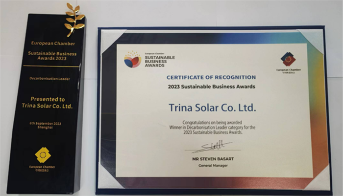 天合光能荣获中国欧盟商会“脱碳领航者”大奖