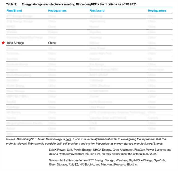 Trina Storage, a business unit of Trinasolar, has been named to BloombergNEF's (BNEF) Energy Storage Tier 1 Ranking for Q3 2025. This is the seventh consecutive quarter the company has achieved this recognition, reinforcing its leadership in the global energy storage market.