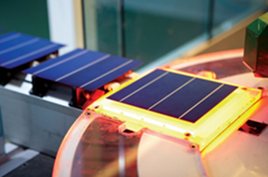 「太陽電池セル」の略称。太陽電池としての機能を持つ最小単位で、「ソーラーセル」「PVセル」も同義。ウエハに電極を形成したもの。セルを複数枚、直並列に並べて接続し、屋外で利用できるように樹脂や強化ガラス、アルミ枠などで保護・強化しパッケージ化したものが太陽電池モジュールです。太陽電池の構成は、「セル」→「モジュール」→「アレイ」の順に大きくなります。
