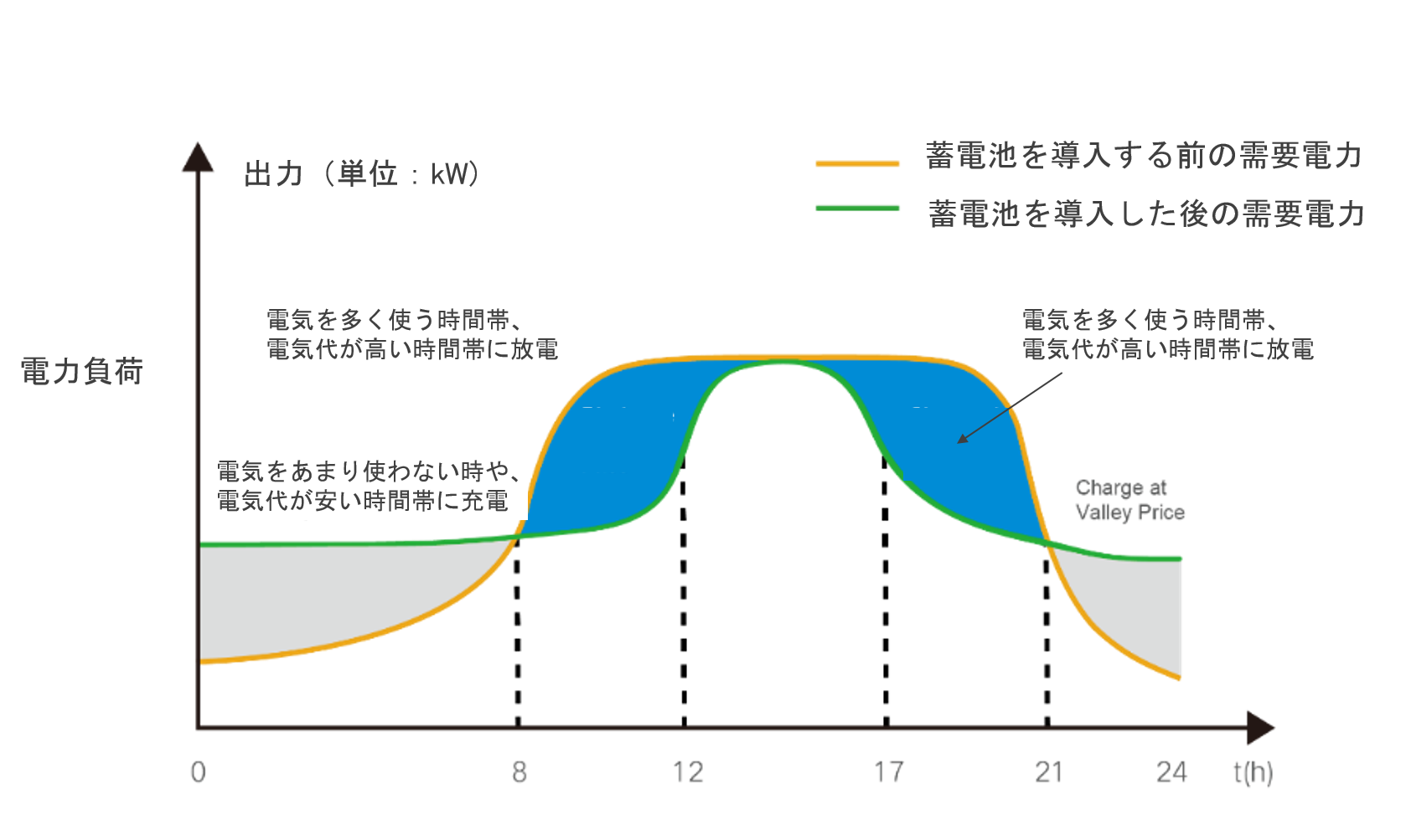 ピークシフトは電気を電力会社から購入する時間帯を、電力使用量のピーク時間帯以外に移行することです。