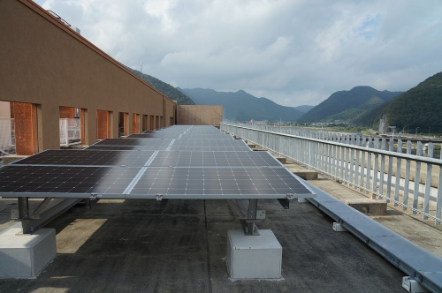 屋上に設置した太陽光発電設備の一部(写真:守山 久子)