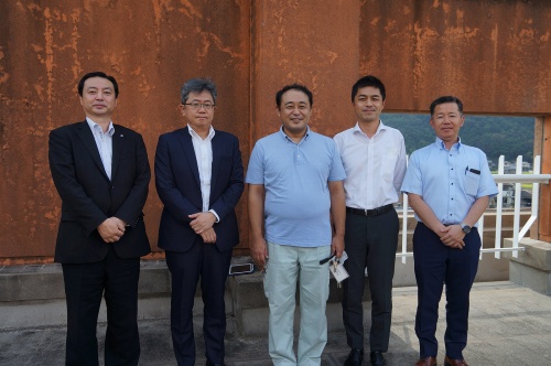 左から日比谷総合設備の落合茂・関西支店営業部門第2営業部担当部長と坂尾健一・LC営業統括本部ソリューションプランニング部主任技師、上郡町役場財政管理課の小田賢・管財係長、国際航業コトづくり部事業開発グループの飯尾圭造・REデザイン事業推進担当課長と福田敦信・REデザイン担当部長(写真:守山 久子)