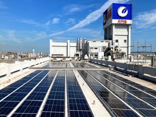 施工はダイセン(大阪市)が手掛けた。太陽光発電パネルには、モジュール1枚の発電量が大きい製品を選んでいる。太陽光による発電は、本店三号工場と本店二号蔵工場で消費する電力の5%程度をまかなう計算だ。